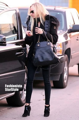 ■12月4日スタジオシティーで黒ジャケットにバレンシアガ(Balenciaga)バッグ。