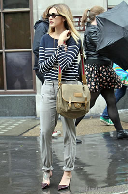 ■9月24日英国の人気司会者Fearne Cotton(ファーン・コットン)です。BBCラジオ局へお昼の番組へ出かけるところいつもキャッチされてます。Vince(ヴィンス)のボーダートップスにWarehouse(ウェアハウス)のチノパン。Stella McCartney (ステラ マッカートニー)のパンプスにMarc Jacobs(マーク・ジェイコブス)の新作アーミーバッグ。