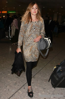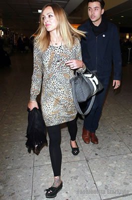 ■10月3日ロンドン・ヒースロー空港にペルーからレオパードワンピースを着て帰ってきたFearne Cotton(ファーン・コットン)です。